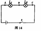 22.如图13所示,在示教板上,有两个小灯泡和一个开关,它们的连接电路在示教板背面,无法看到。某同学试了一下,闭合开关时两灯泡均亮,断开开关时,两灯泡均熄灭,这两个小灯泡究竟是串联还是并联?请你写出一种判断方法。