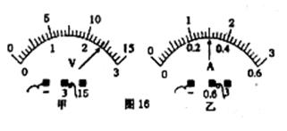 (3)若实验错误更正后,某次实验数据如图16,则待测小灯泡两端的电压为________V;通过的电流是________A;电阻的大小是________