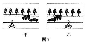 25.小强在马路边上拍街景照片,连续拍了两张,如图7甲、乙所示。如果以轿车为参照物,卡车是向 运动的,如果以骑自行车的人为参照物,卡车是向 运动的。 (填“左”或“右”)可见,如果选择的参照物不同,描述同一物体的运动时,结论一般也不一样,这就是 。