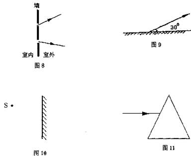 30.如图11所示,一束光射向一块用玻璃制成的三棱镜。请画出这束光进入三棱镜和离开三棱镜后的径迹