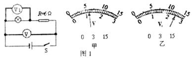 9.在图1所示的电路中,开关S闭合时,电压表V和V1的示数如图l甲、乙所示,则该电路中的电流为