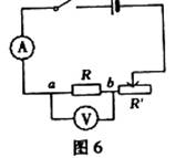 23.在“研究电流跟电压、电阻的关系”时,同学们设计如图6电路图,其中R为定值电阻,R’为滑动变阻器,实验后,数据记录在表一和表二中。