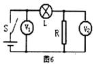 13、在如图6所示的电路中,电源电压不变,闭合开关S,电路正常工作,一段时间后,发现其中一个电压表的示数变大,则