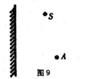 20.如图9所示,平面镜前有一点光源,请作出从光源S射出的一条光线,使它的反射光线经过A点。