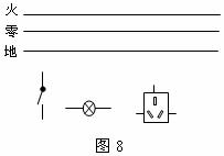 23.如图8所示是家庭电路的某一部分的示意图,请用笔画线代替导线把该电路连接完整,并且使之符合安全用用电的要求。