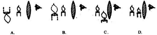 13.在研究凸透镜成像实验中,当烛焰离凸透镜的距离小于焦距时,眼睛通过透镜观察到的虚像可能是图中的
