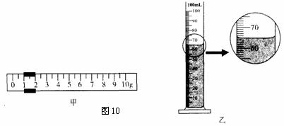 c.把烧杯中的盐水全部倒入量筒中,如图10(乙)所示。则盐水的体积V= cm3。