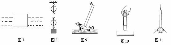 16.如图7所示,一个重5N的木块在水面漂浮,画出它受浮力的示意图。