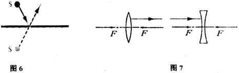 16、请在图7中两幅图上分别作出入射光线、出射光线。