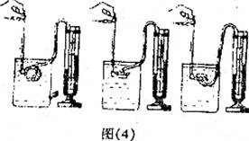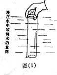 6.如图(1)所示,把装满水的量筒浸入水中,口朝下,然后逐渐向上提,在杯口不离开水面前,露出水面部分的量筒中 ( )
