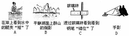 1.如图1所示四种现象中,由于光的反射而形成的是 ( )