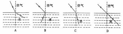 11.如图2中哪个图正确地表示了光从水中射入空气中的情况 ( )