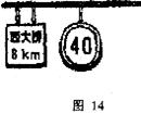 (1)春节期间小明全家驾车到外地旅游,在公路上看到如图14所示的标志牌,若按照标志牌的指示驾车,他们最快需要经过多长时间才能到达两大桥?