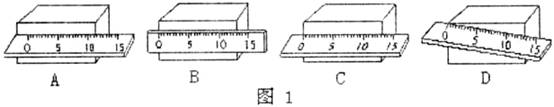 1.用厚刻度尺测量一木块的长度,如图1所示的操作中正确是( )