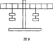 3.小明在探究杠杆平衡条件的实验中,测得了如下的麴据,其中第2组数据中漏掉一个,请你帮他填上,你认为有错误的一组是 。如图8所示,此时若在左端再加两个钩码,要使杠杆平衡,应将右端的钩码向 端移动 格。(4分)