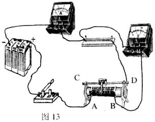 (1)在研究电压的变化对电流的影响时,他连接的电路如图13所示。但电路中有一根导线接错了,请你用笔在图中将接错的导线打上“×”,把正确的接线画上。