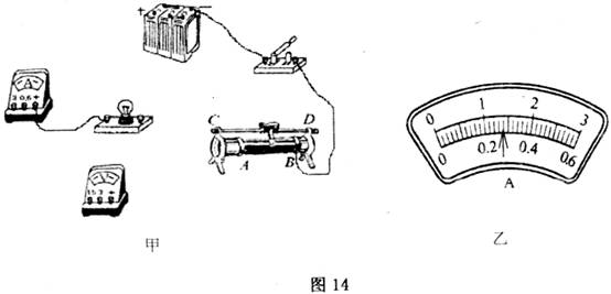 (3)调节滑动变阻器使小灯泡的额定电压下正常发光时,电流表的示数位置如图14乙所示,则灯泡的额定功率为__________W。