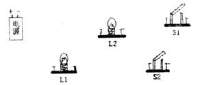 3、如下图,现有一个电池组,两个开关和两盏电灯,请你连接好下面的实物电路图,使S1闭合时L1亮,S2闭合时L2亮。