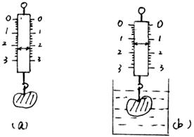 6、把一小石块挂在弹簧测力计下,示数如图(a)所示,然后慢慢的把小石块浸没在水中,弹簧测力计示数如图(b)所示,用量筒可测小石块的体积为80cm3,则小石块密度 为 kg/m3;小石块所受的浮力为 N。