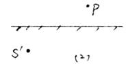 2、在平面镜前有一发光点S,其像点为S′,它发出的一条光线经平面镜反射后恰好过点P。试找出S的位置,并完成光路图。