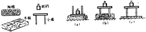 27.探究“压力的作用效果与哪些因素有关”的实验中,小明和小华利用所提供的器材(小桌、海绵、砝码、木板)设计了图(a)和(b)两个实验,通过观察(a)、(b)得出“压力一定时,受力面积越小,压力的作用效果越明显”的结论。此后小华把小桌挪放到一块木板上,发现小桌对木块的压力效果不明显,如图(c)所示。通过对(a)、(c)的比较又得出“压力一定时,受力面积越小,压力的作用效果越不明显”的结论。
