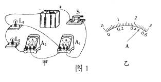 2.在图1甲所示的电路中,A1的示数为1.2A,A2的示数如图1乙所示.下列判断正确的是
