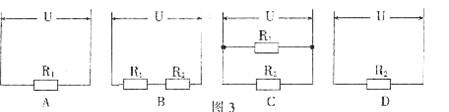 5.有两条电阻丝,其阻值R1>R2要利用它们将一壶水煮开,采用图3中的哪种连接方式用电时间最短