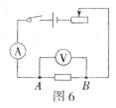8.小明同学用控制变量法探究“电流跟电阻的关系”,电路如图6所示,在此实验过程中,当A、B两点间的电阻由5
