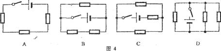 6.在图4所示的电路中,开关闭合后,三个电阻并联的电路是