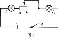 15.有两只灯泡L1和L2,分别标有“8V、4W”和“4V、1W”,将它们与变阻器串联后接在12V的电源上,如图5所示,当滑动变阻器的滑片从b向a滑动时,假设两灯都能发光,下列判断正确的是