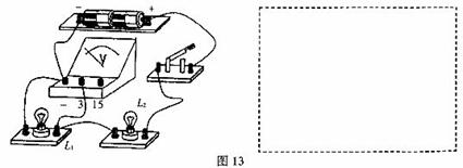30.(2分)如图l3所示的电路中,电压表测的是灯__________两端的电压,请在右面的虚线框中画出该实物图的电路图。