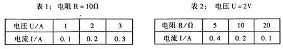 35.(4分)下面的表格是“研究电流跟电压、电阻关系”的实验数据记录。