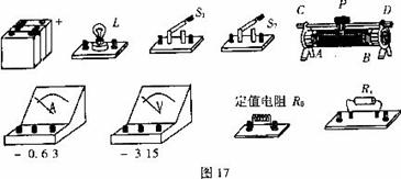 37.(6分)如图l7所示的实验器材是同学们所熟悉的,小刚同学想测出未知电阻