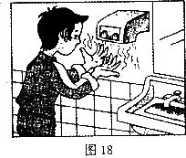 38.(3分)在很多宾馆的卫生间装有热风干手器,洗手后用热风干手器可以很快把手烘干,如图l8所示。这里利用了哪几种方法加快水的蒸发?