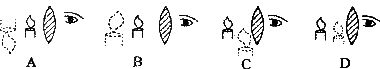 17.在研究凸透镜成像实验中,当烛焰离凸透镜的距离小于焦距时,眼睛通过透镜观察到的虚像可能是下图中的