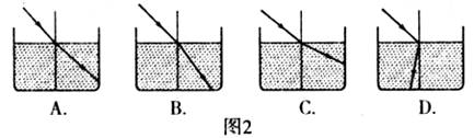 11.一束光线从空气斜射入水中,如图2所示,有关折射的光路图正确的是
