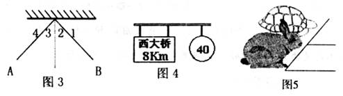 13.在遵守交通规则的前提下,从看到图4的两个交通标志牌的地方到达西大桥,匀速行驶的汽车最快要 min,速度不得超过 。