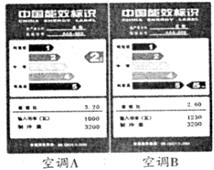 (1)图中所示的是两台空调的能效标识,按照图中所给的输入功率,试计算空调A在220 V电压下工作时的电流是多少安培?(计算结果保留两位小数)