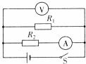 6.在如图所示的电路中,闭合开关S,电压表的示数为U,电流表的示数为I,两电阻的阻值分别为R1与R2,则下列关系式正确的是 ( )