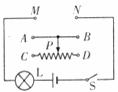 13.在如图所示的电路中,用滑动变阻器控制灯的亮度,若要求滑片P向左端滑动时灯 逐渐变亮,则下列接法正确的是 ( )