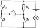 21.在如图所示的电路中,电源电压保持6V不变,当开关S1断开,S2、S3闭合时,电流表的示数为1A;当开关S1闭合,S2、S3断开时,电流表的示数为0.25A,则R1的阻值为_______Ω.当开关S1闭合,S2,S3断开时,R2的电功率为_________W.