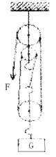 32. 某工地用如图所示的滑轮组匀速提升5000N的重物,在重物上升0.8m的过程中,拉力的功率为2500W,滑轮组的机械效率为80%.则: