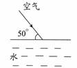 27.如图所示,一束光从空气射入水中,反射角为______度。请在图中大致准确的位置画出折射光线。折射光的亮度将比入射光____________.
