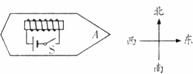 9.如图所示,木制小船模型漂浮在静止的水面上,船上安装了一只电磁铁,船头A指向东,若接通开关S,则小船将会在水平面内自由转动,当小船再次处于静止状态时,船头A指向 ( )
