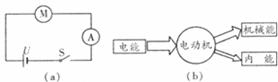,接通电路后,电动机正常转动,电流表读数I=0.8 A,已知电动机正常工作时的能量转化关系如图(b)所示,摩擦不计,