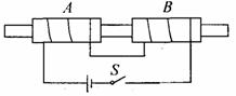 10.在光滑的玻璃棒上套有两个可自由移动的螺线管A和B,如图所示,当开关S闭合时,A、B两螺线管将