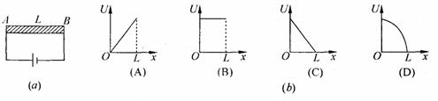 11.如图(a)所示的电路中,AB为粗细均匀的长为L的电阻线,以AB上的各点对B点的电压U为纵坐标,各点离B点的距离为x为横坐标,则U随x变化的图线为图(b)中的