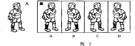 11、王帅同学在平面镜前欣赏自己的全身像,如图2,是他此时所看到的自身像的是:
