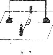 23、探究平面镜成像特点的实验中:如图7,在桌面上竖立一块玻璃板作为平面镜。实验时,在竖立的玻璃板前面放一支点燃的蜡烛,可以看到玻璃板后面出现蜡烛的像。另外拿一支相同的蜡烛在玻璃板后面移动,直到看上去它跟像完全重合。这是为了比较物体与像的大小和确定像的位置。得到的结论是: