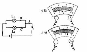 (3)在测量过程中,电流表在A、B处的示数如图所示,则通过L2的电流为_________A。